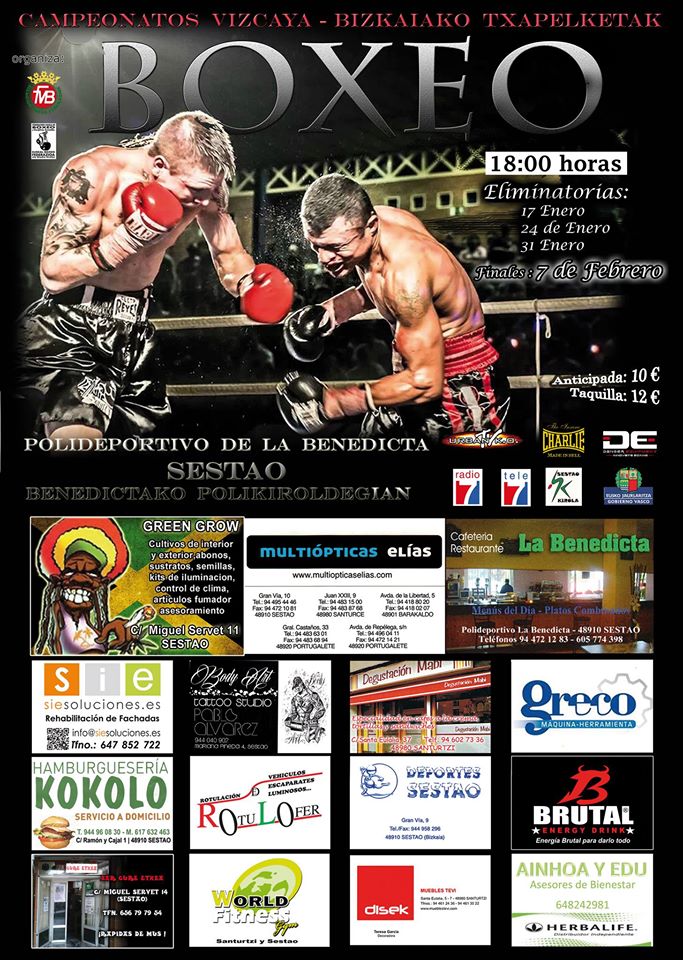 - Campeonato de Bizkaia de boxeo: En el Polideportivo la Benedicta de Sestao. Fechas: 17 enero, 24 de enero, 31 de enero y las finales el 7 de febrero.