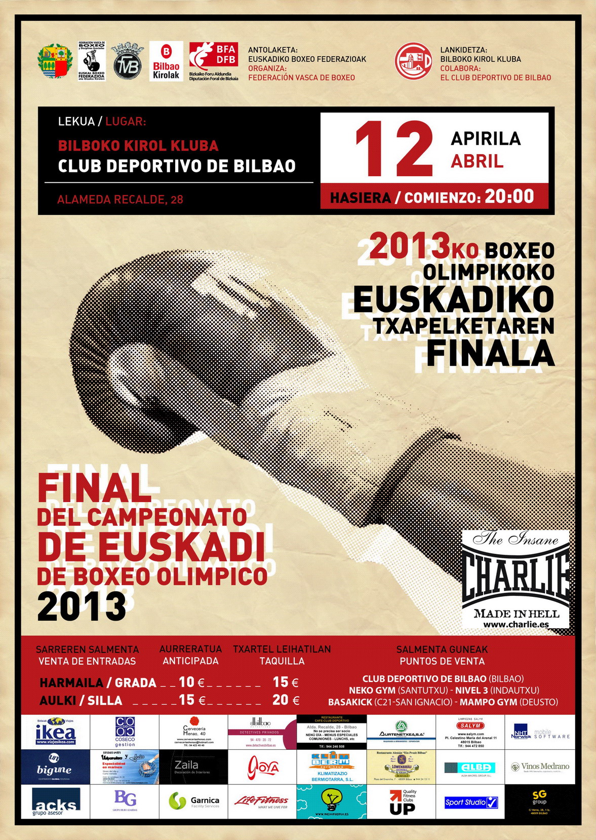 CAMPEONATO DE EUSKADI DE BOXEO OLIMPICO 2013 VIERNES 12 DE ABRIL – 20:00 H. CLUB DEPORTIVO DE BILBAO.